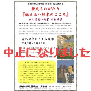 3月15日の静岡県藤枝市郷土博物館・文学館 講演イベントが中止(延期)となりました。