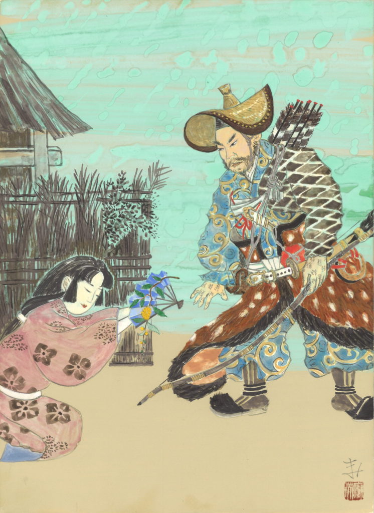 今年3月からスタートした清流出版さん月刊「清流」美辞礼賛、「光明皇后」、「お市の方と小豆袋」と続いて、五月号には「太田道灌と山吹の少女の逸話と絵をご掲載いただきました。これは道灌会の会長・太田資暁さまのご指導により、白山吹から八重の黄色い山吹に描きかえたものを初掲出。河鍋暁斎先生のお軸の絵が白山吹になっていたので、あえて白で描いたところ、道灌のご子孫・家臣のご子孫の皆様のご研究から、正しくは黄色の八重山吹と昨年ご指導いただき、この度の連載に合わせて描きかえた次第です。皆様のご指導に心より御礼申し上げます。