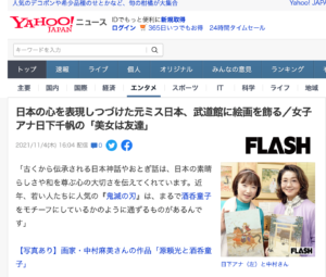 〜「古くから伝承される日本神話やおとぎ話は、日本の素晴らしさや和を尊ぶ心の大切さを伝えてくれています。近年若い人たちに人気の「鬼滅の刃」は、まるで「酒呑童子」をモチーフにしているかのように通ずるものがあるんです。」このように熱く語るのは、1986年ミス日本グランプリで画家の中村麻美さん。三重県津市出身、津田塾大学では社会学のゼミで「羽衣伝説」を研究したことが、その後の人生に大きな影響を与えた・・・・〜