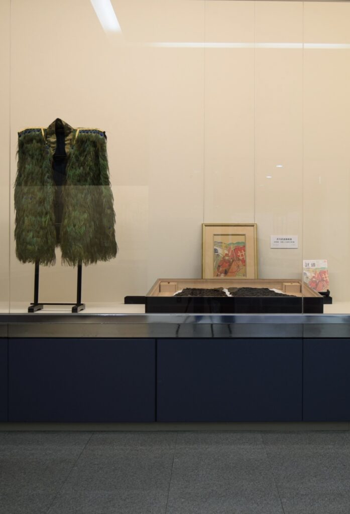 孔雀尾の陣羽織は、井伊直政が伊賀越えの功により、主君徳川家康から拝領したもの✨衣装盆に平置きのものが大切に保存されている実物😮✨✨左に掛けられているものはレプリカです。