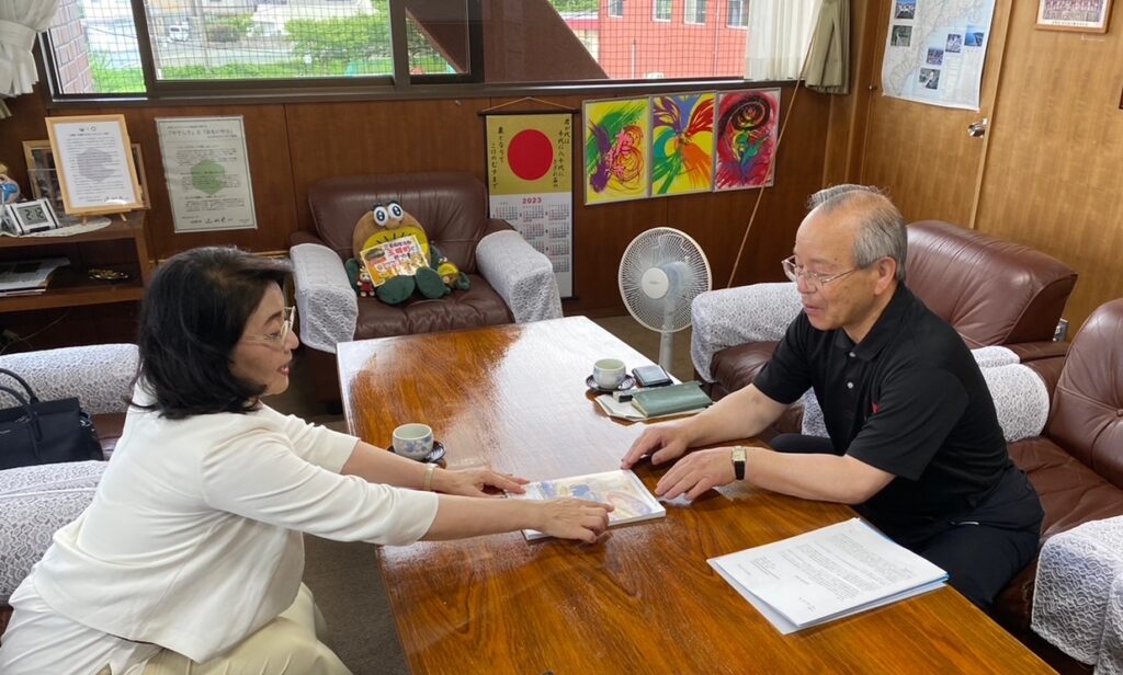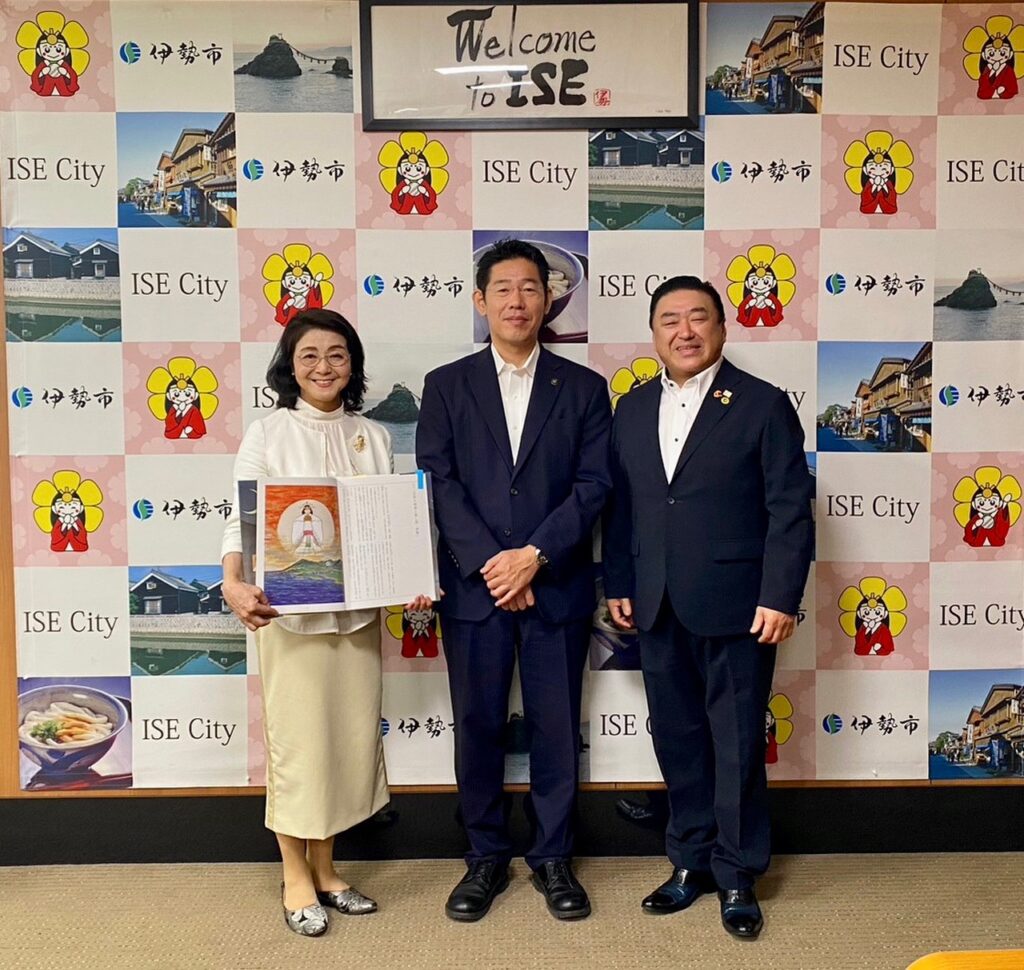 その後、鈴木健一伊勢市長、辻村修一玉城町長、「斎王」寄贈の際にお世話になった前三重県知事・現衆議院議員鈴木英敬氏の伊勢事務所を訪問。伊勢市、玉城町からのご後援もいただき、母校津西高同窓会もご後援下さいます。