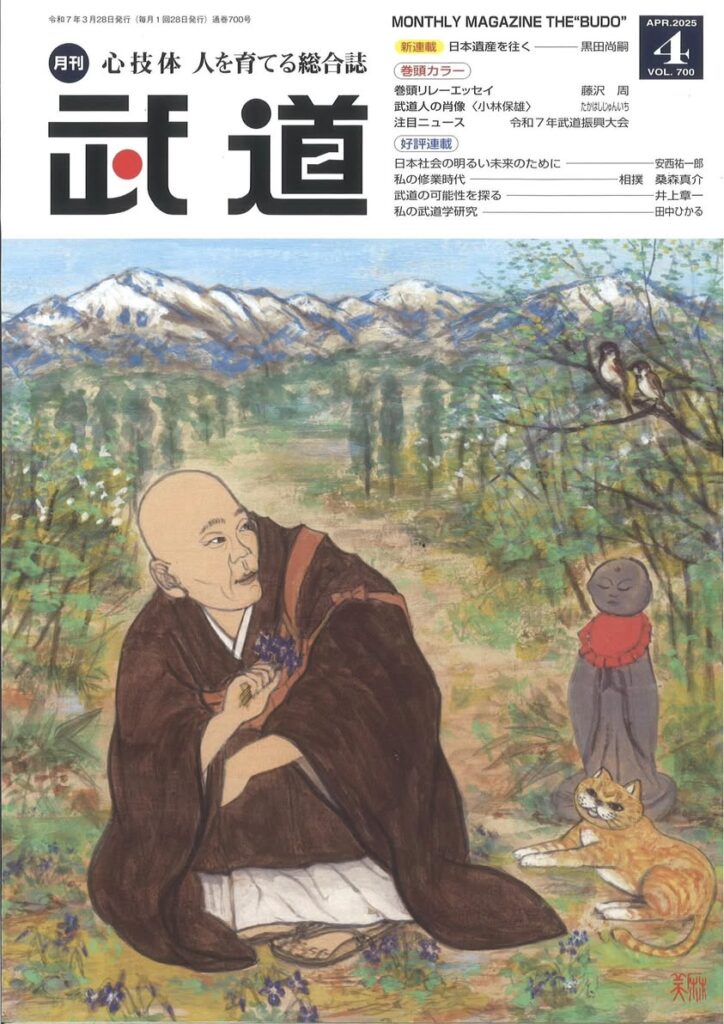 日本武道館発行月刊『武道』令和7年4月号、本日発刊です。表紙には、「あはれ鉢の子 良寛さまと菫」をお描きしました。