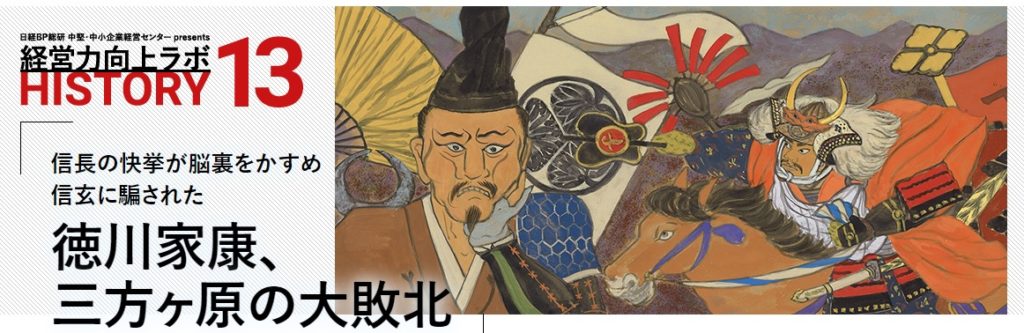 NTT東日本 歴史の失敗学「徳川家康 三方ヶ原の大敗北」公開となりました徳川家康が武田信玄に敗れた、三方ヶ原の戦いをお描きしました。NTT東日本法人向けウェブサイト >経営力向上ラボ >歴史の失敗学にて、バックナンバーも含めてご覧いただけます。登録無料です。